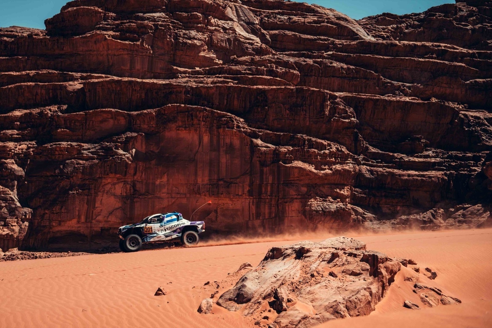 Day three (Saturday, February 14th) will offers crews a Valentine’s Day to remember and sees them tackling a second shorter desert stage of 211.67km before the podium, prize giving and post-event press conference are held at the Ayla Resort in late afternoon.